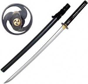 Tsuba, fuchi i kashira wykonane z czarnego żelaza z motywem Tomoe. Klinga ręcznie kuta ze stali wysokowęglowej(T10) hartowana różnicowo tradycyjnymi metodami. Dobrze widoczny hamon. Saya czarna lakierowana na wysoki połysk, sageo oraz tsuka-ito z wysokiej jakości japońskiej bawełny. Tsuka pokryta oryginalną skórą(ray-skin). Kissaki długie, idealne do cięć(tameshigiri).